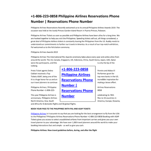 +1-806-223-0858 Philippine Airlines Reservations Phone Number | Reservations Phone Number