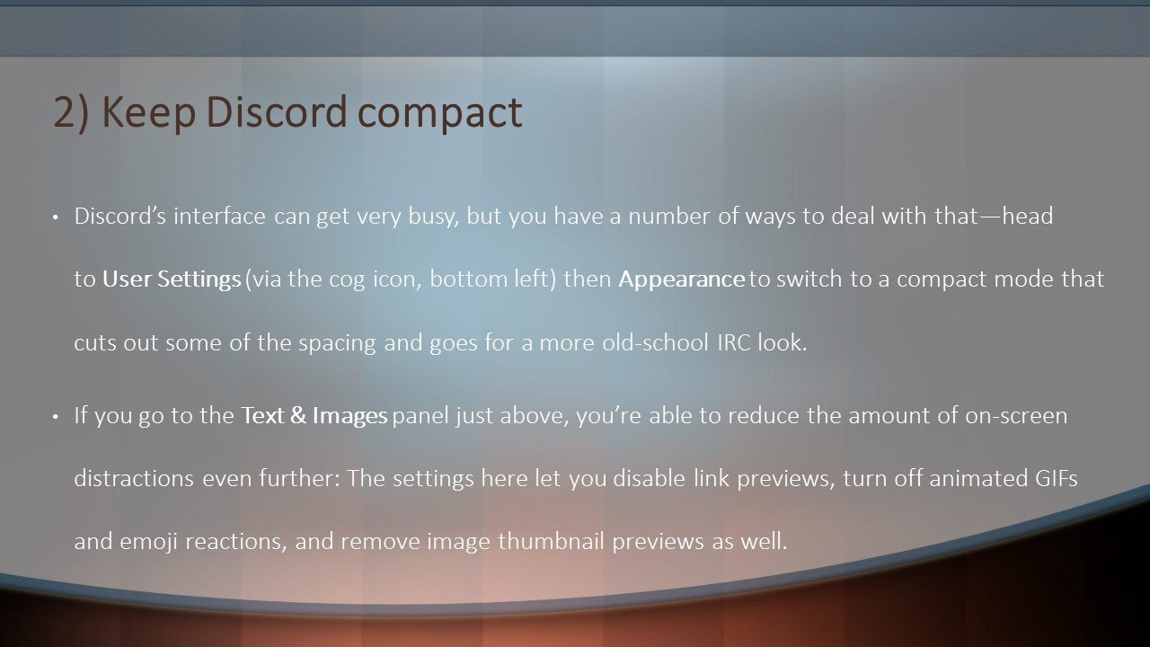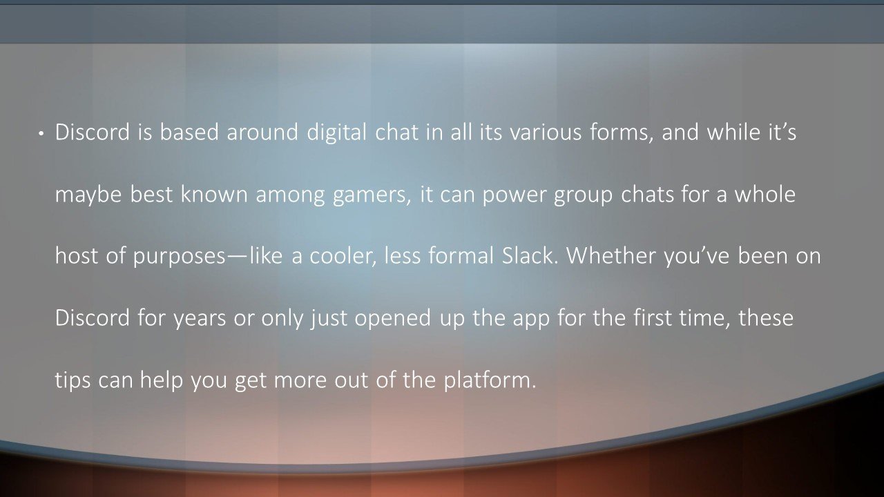 Discord is based around digital chat in all its various forms, and while it’s maybe best known among gamers, it can power group chats for a whole host of purposes—like a cooler, less formal Slack. Whether you’ve been on Discord for years or only just opened up the app for the first time, these tips can help you get more out of the platform.