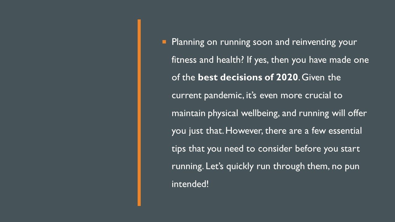 Planning on running soon and reinventing your fitness and health? If yes, then you have made one of the best decisions of 2020. Given the current pandemic, it’s even more crucial to maintain physical wellbeing, and running will offer you just that. However, there are a few essential tips that you need to consider before you start running. Let’s quickly run through them, no pun intended!