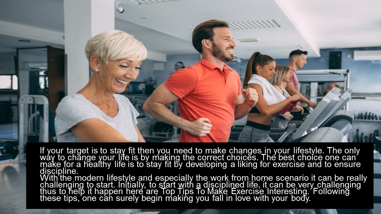 If your target is to stay fit then you need to make changes in your lifestyle. The only way to change your life is by making the correct choices. The best choice one can make for a healthy life is to stay fit by developing a liking for exercise and to ensure discipline. With the modern lifestyle and especially the work from home scenario it can be really challenging to start. Initially, to start with a disciplined life, it can be very challenging thus to help it happen here are Top Tips To Make Exercise Interesting. Following these tips, one can surely begin making you fall in love with your body.