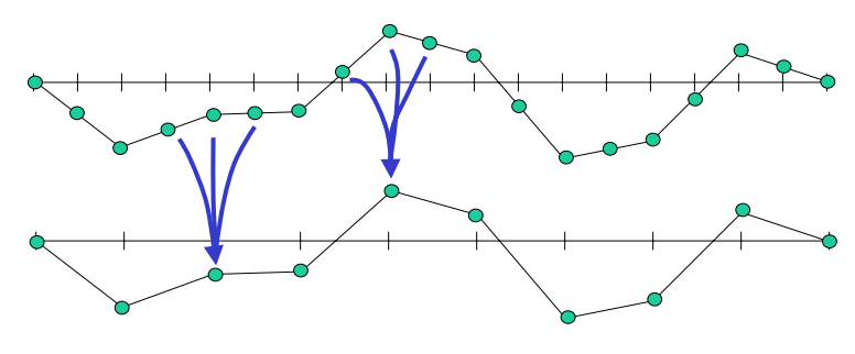 This is a linear operator from the coarser grid onto the finer grid, we'll call it \(\Uparrow^{h}_{2h} : \Omega^{2h} \to \Omega^h\)