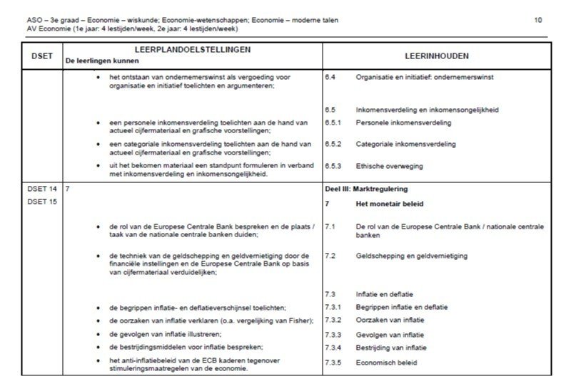 Je bent blij met de belangstelling van je leerlingen voor de sociaal-economische wereld, en stelt voor om tijdens een studie-uur volgende week rond te tafel te gaan zitten met beide leerlingen. Je wil tegelijk ook een koppeling maken met de leerplandoelen van je vak.