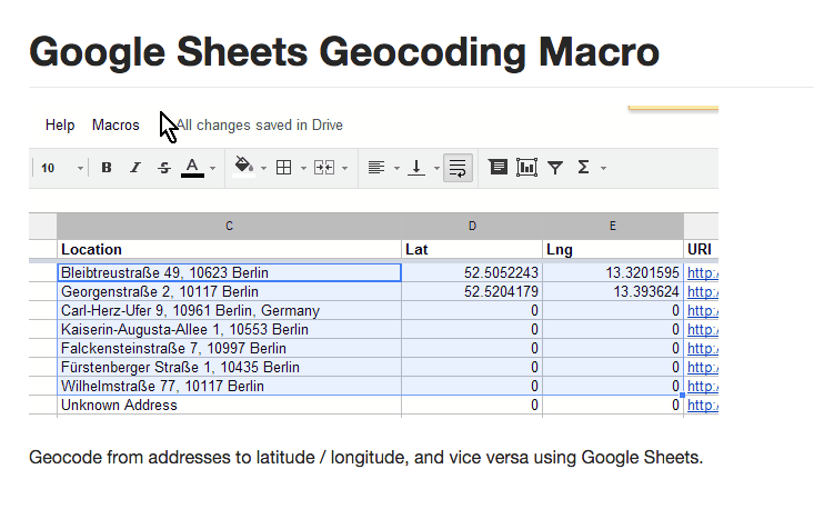 - Use Google Maps API in Google Spreadsheet with a macro script