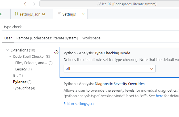 change Type Checking Mode from off to basic