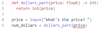 num_dollars = dollars_part(price)🙋🏻♂️❓🙋🏻♀️What's the problem here?