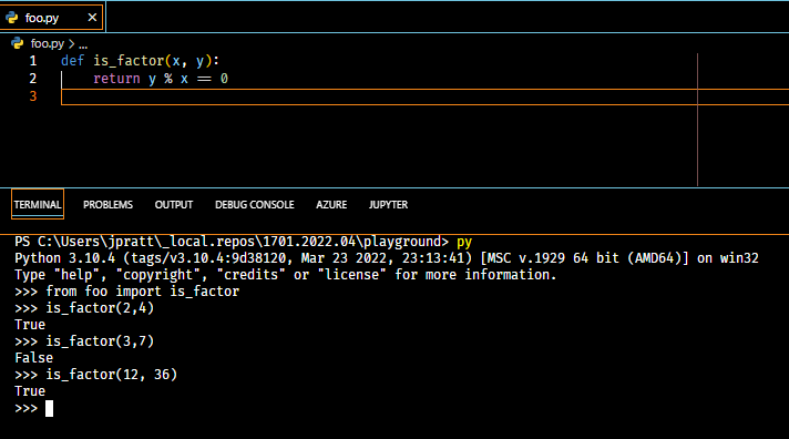 Make a function is_factor(x, y) that returns True if x is a factor of y (and False otherwise).