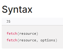 - We can call an API using fetch(). Usually we just call it with a URI, but sometimes we can add some options.