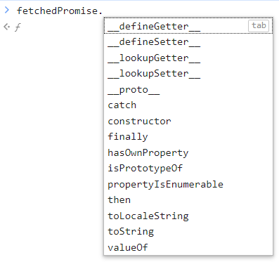 Hitting the . on this sucker shows that this Promise object doesn't have a ton of properties.