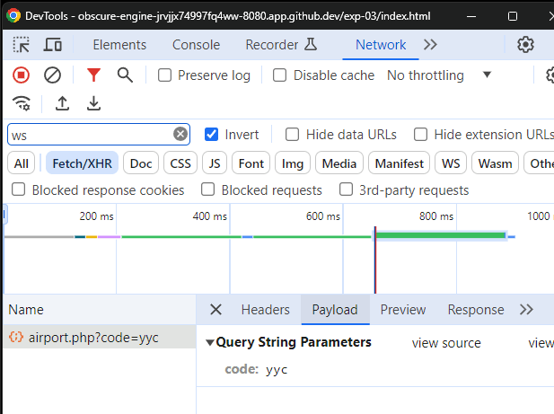 If we look in the Network tab of the dev tools, we can confirm that we are getting what we want coming back over the network!