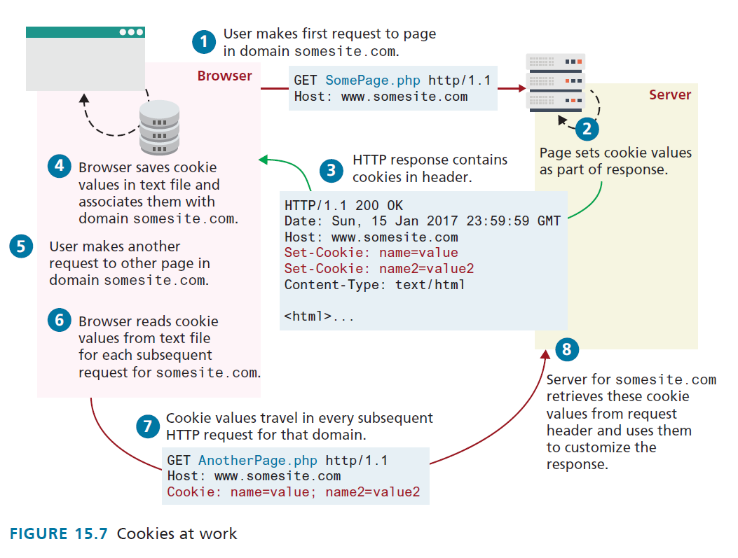 - The page response will have a request to make a cookie with the key PHPSESSID and the unique ID as the value.