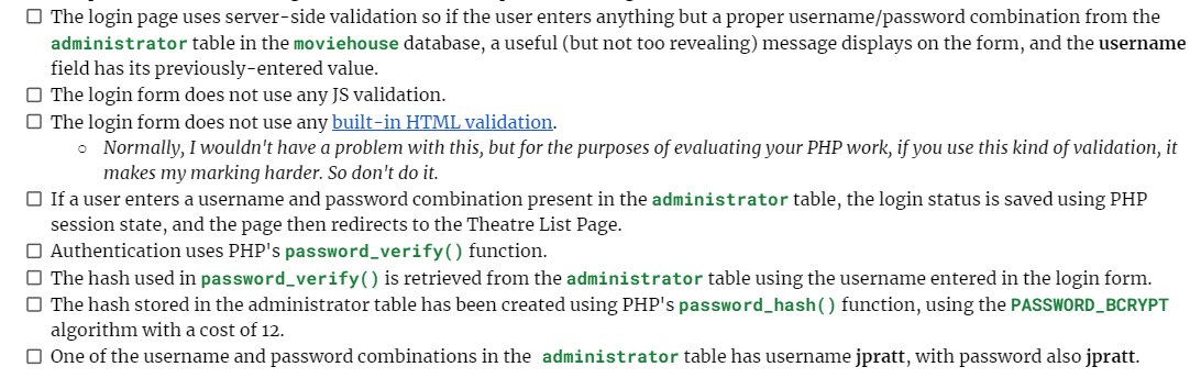 - Alter the code you currently use in your form to validate the username and password so that it now looks up the hash for the username logging in and verifies it using password_verify().