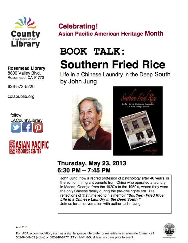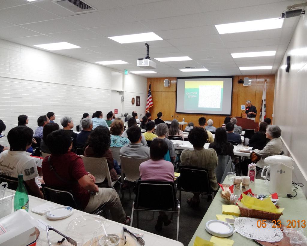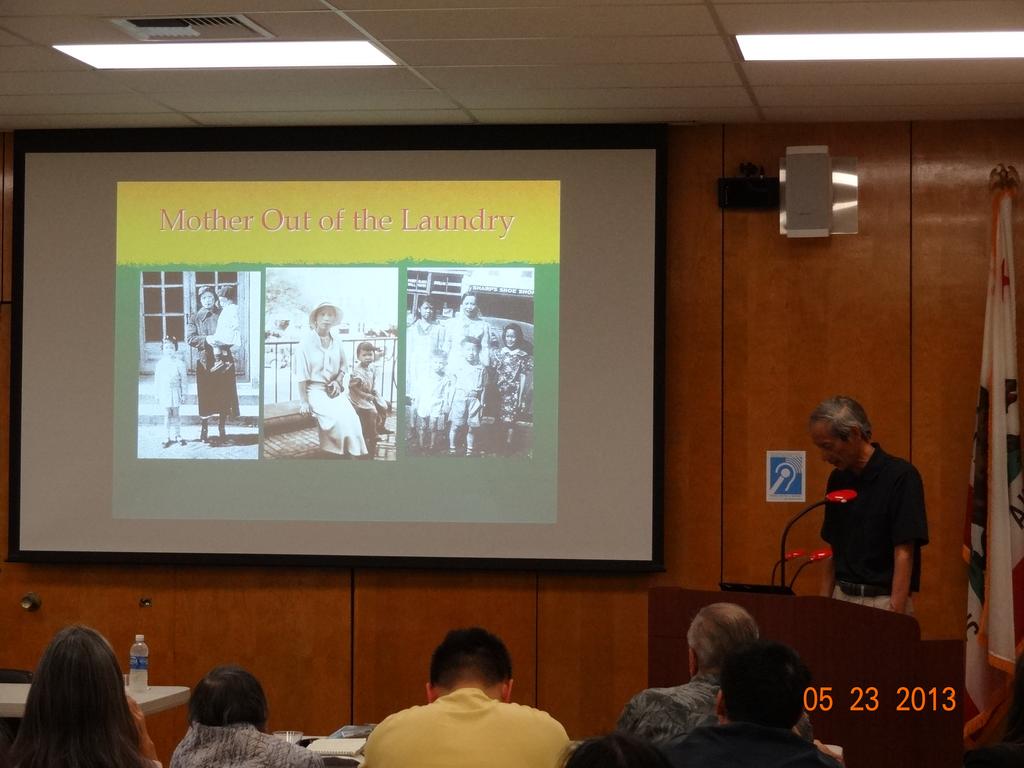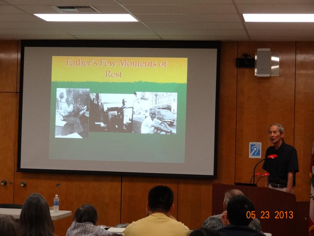 Scenes from a book talk by John Jung at the Rosemead, CA library, May 23, 2013. (Photographs by Ken Nagashima and Phyllis Jung)