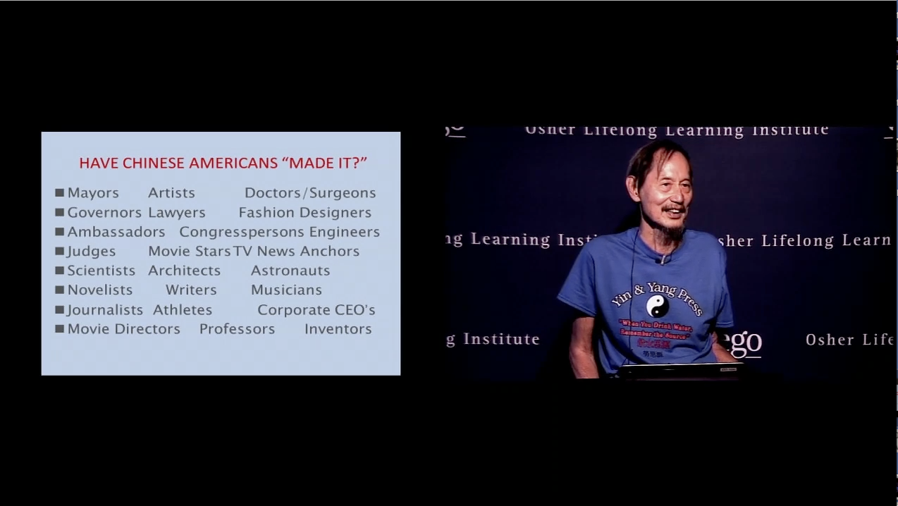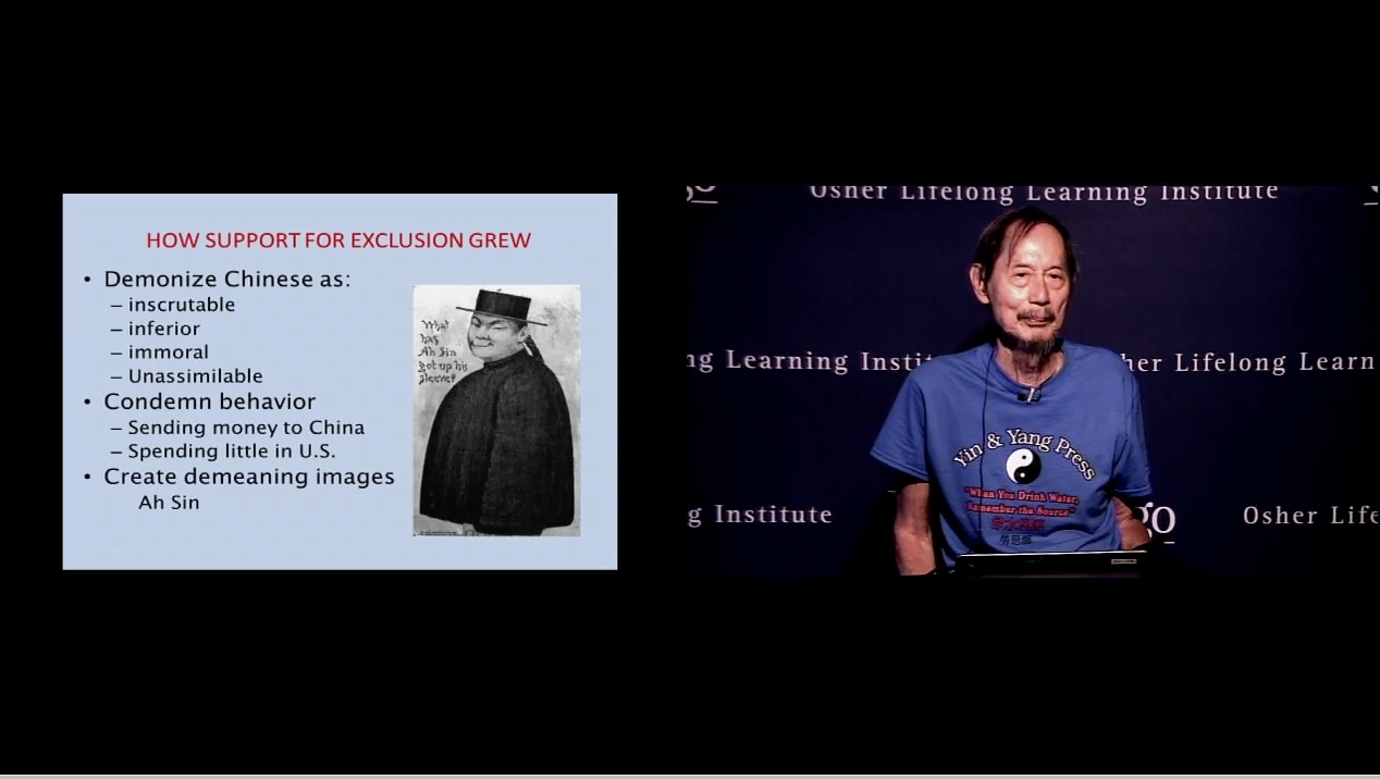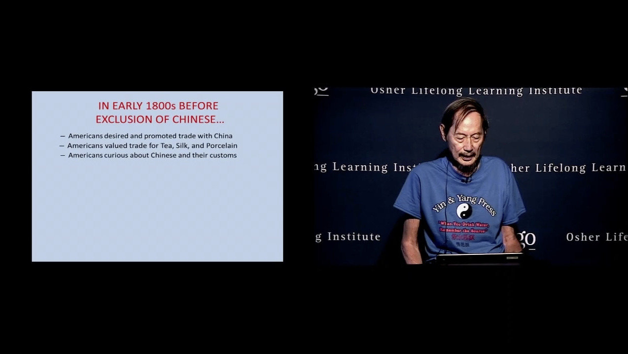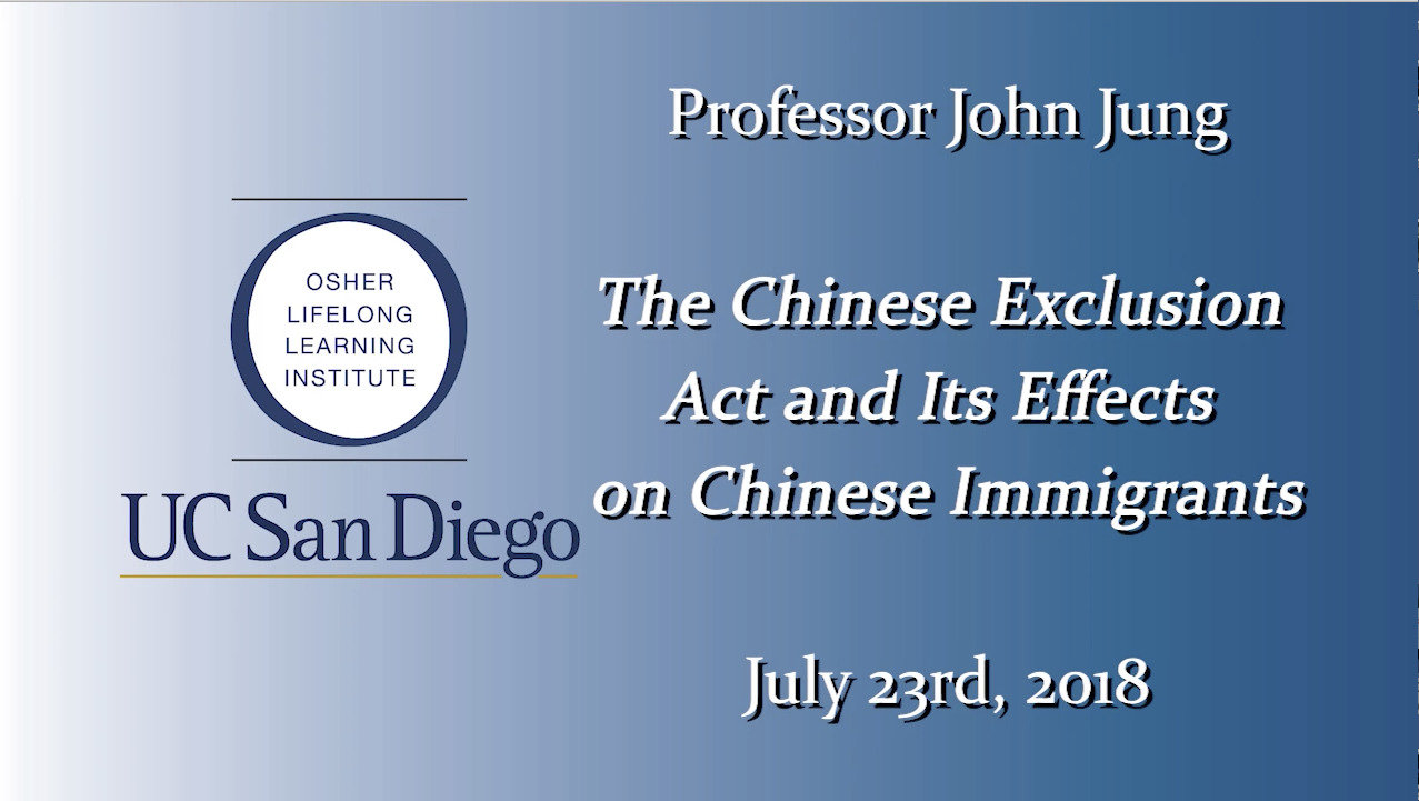 Sample of slides from an hour presentation at the Osher Lifelong Learning institute, U.C. San Diego, July 23, 2018 on the Chinese Exclusion Act and its lingering adverse effect on Chinese in America. https://vimeo.com/282550469