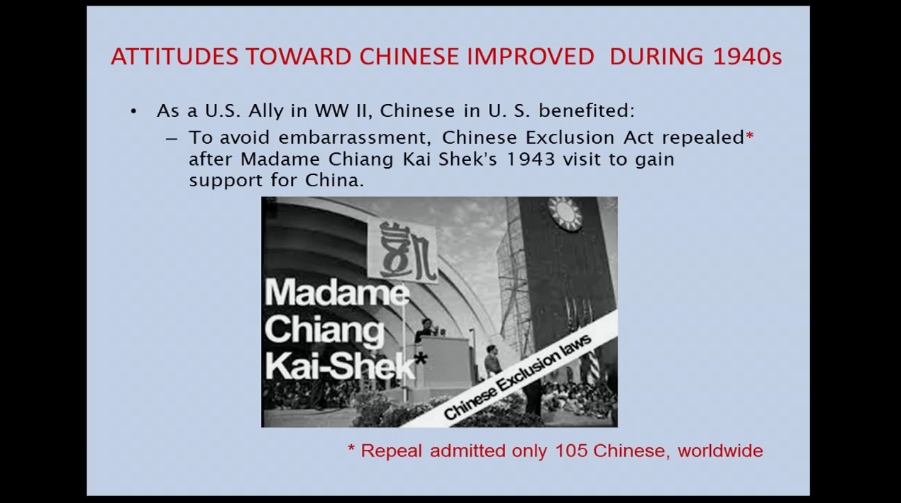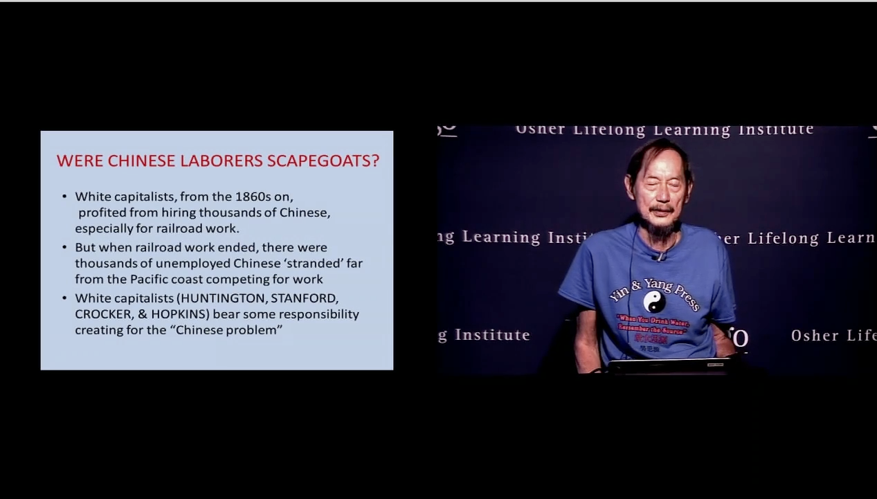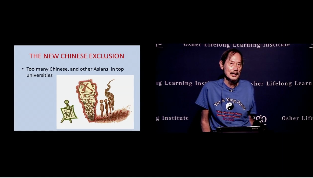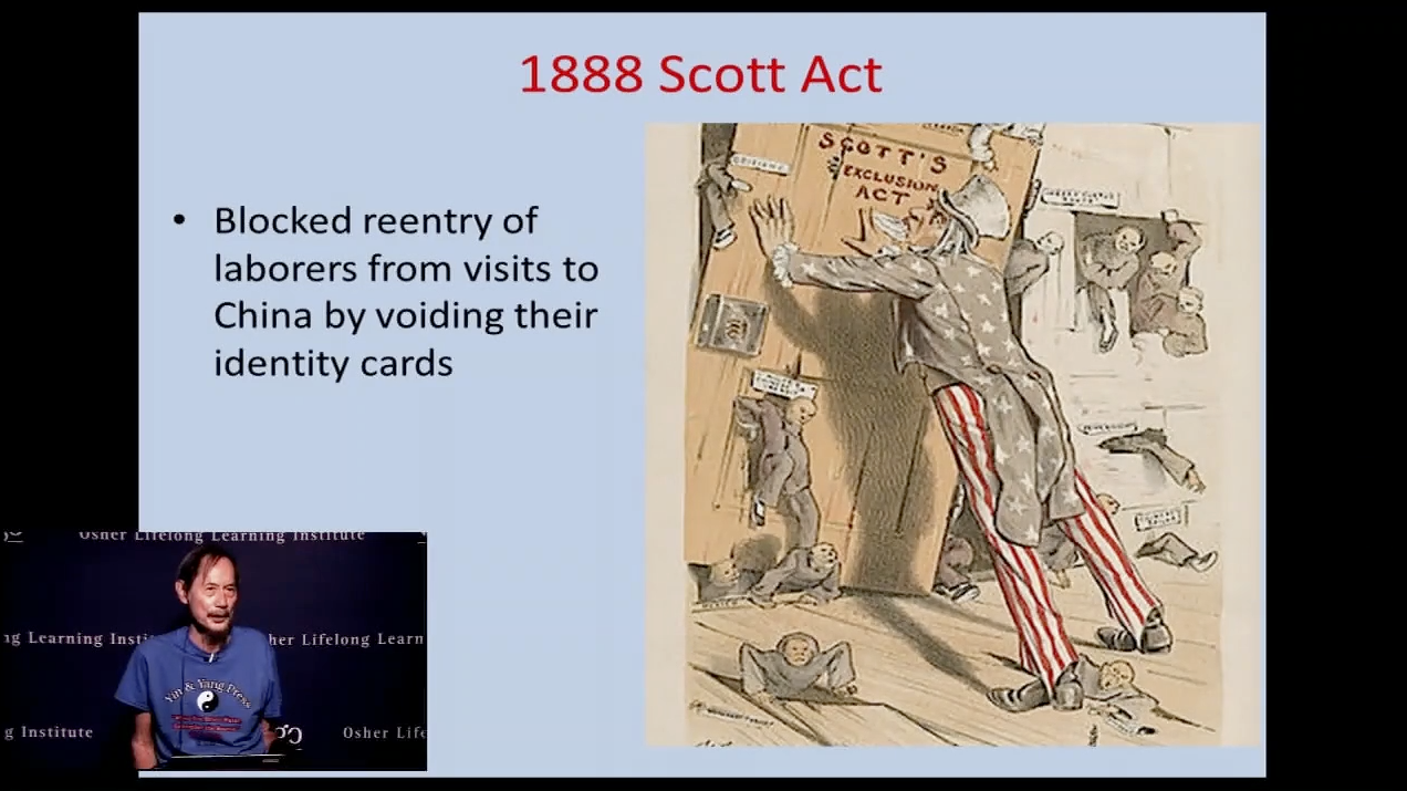 Sample of slides from an hour presentation at the Osher Lifelong Learning institute, U.C. San Diego, July 23, 2018 on the Chinese Exclusion Act and its lingering adverse effect on Chinese in America. https://vimeo.com/282550469