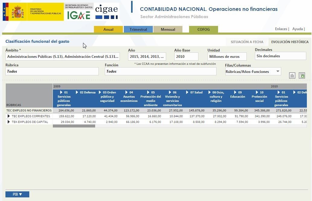 <h1> Datos anuales de Contabilidad Nacional según clasificación funcional (COFOG)</h1>