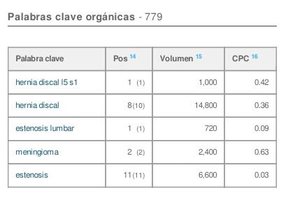 cerca de 800 palabras de búsqueda entre las 20 primeras de google