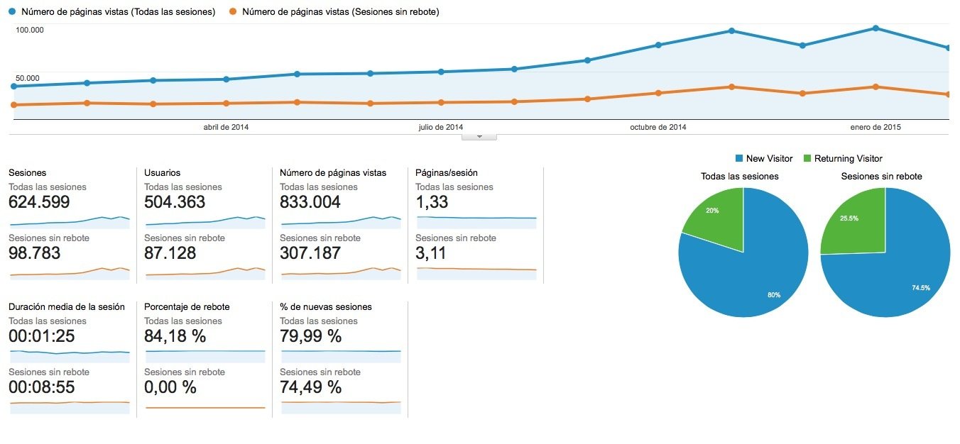 (en naranja) sesiones "sin rebote" (es decir "buenas")