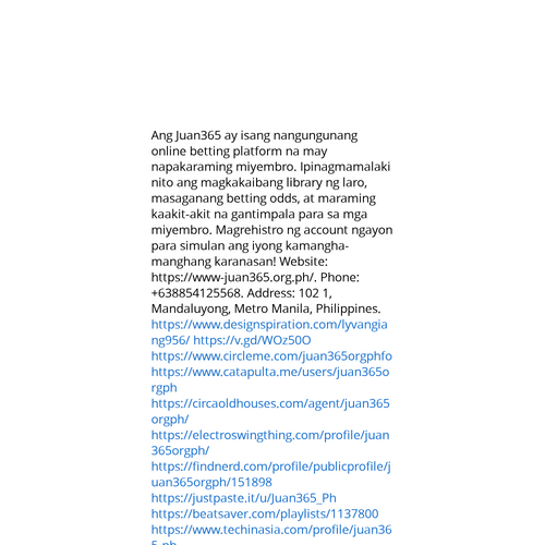 Website: https://www-juan365.org.ph/https://www-juan365.org.ph/ Ang Juan365 ay isang nangungunang online betting platform na may napakaraming miyembro. Ipinagmamalaki nito ang magkakaibang library ng laro, masaganang betting odds, at maraming kaakit-akit na gantimpala para sa