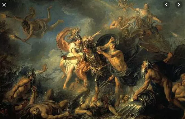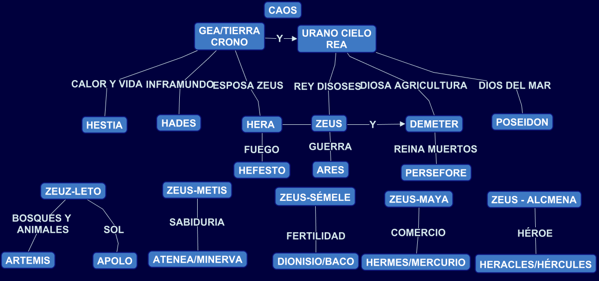 Luego surgío Gea (tierra), al unirse con Urano (cielo)dieron origen a ciclopes, titanes, titanides, hecatonquiros