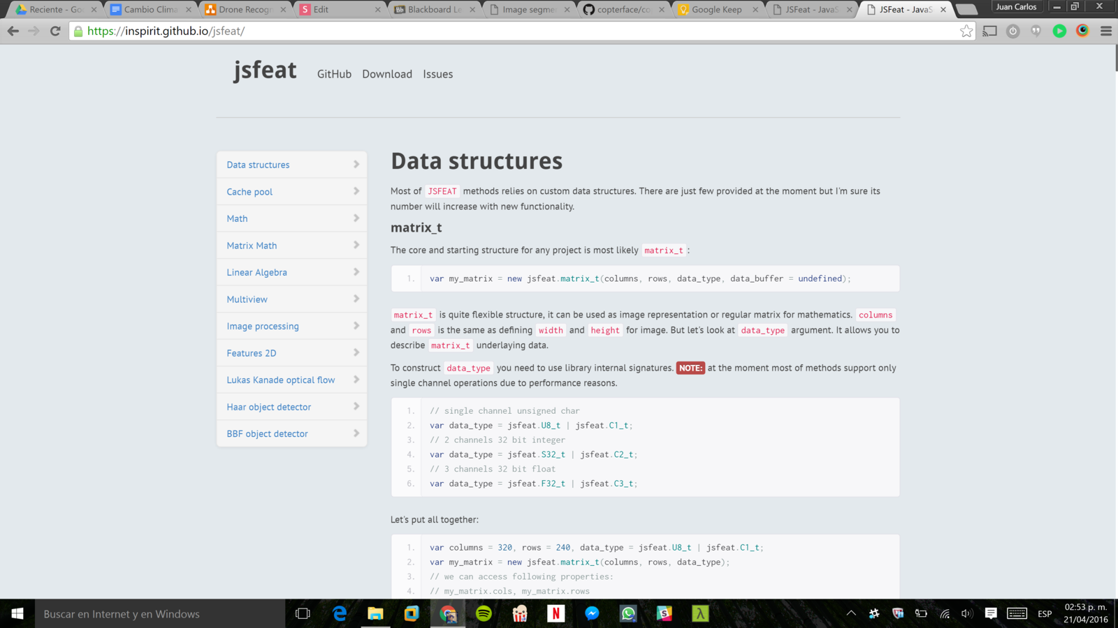 var gray_img = new jsfeat.matrix_t(width, height, jsfeat.U8_t | jsfeat.C1_t); jsfeat.imgproc.grayscale(image_data.data, width, height, gray_img, jsfeat.COLOR_RGBA2GRAY;);
