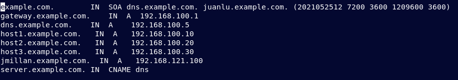En fichero .db se definen los DNS SOA, A y CNAME que conformarán nuestra configuración DNS