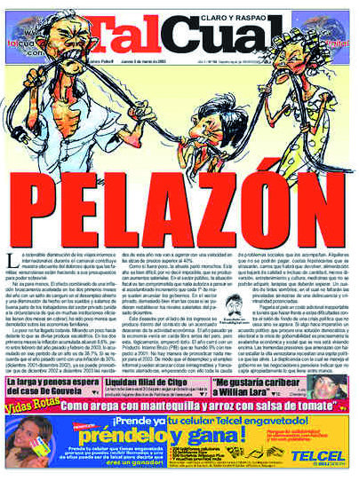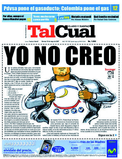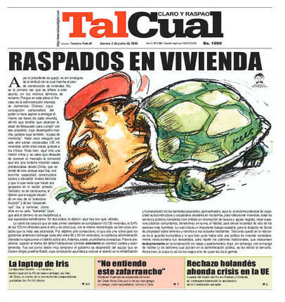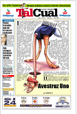 En ese año TalCual comienza a utilizar las caricaturas para ilustrar sus portadas. La imagen, que no ha perdido vigencia, es del caricaturista Roberto Weil.