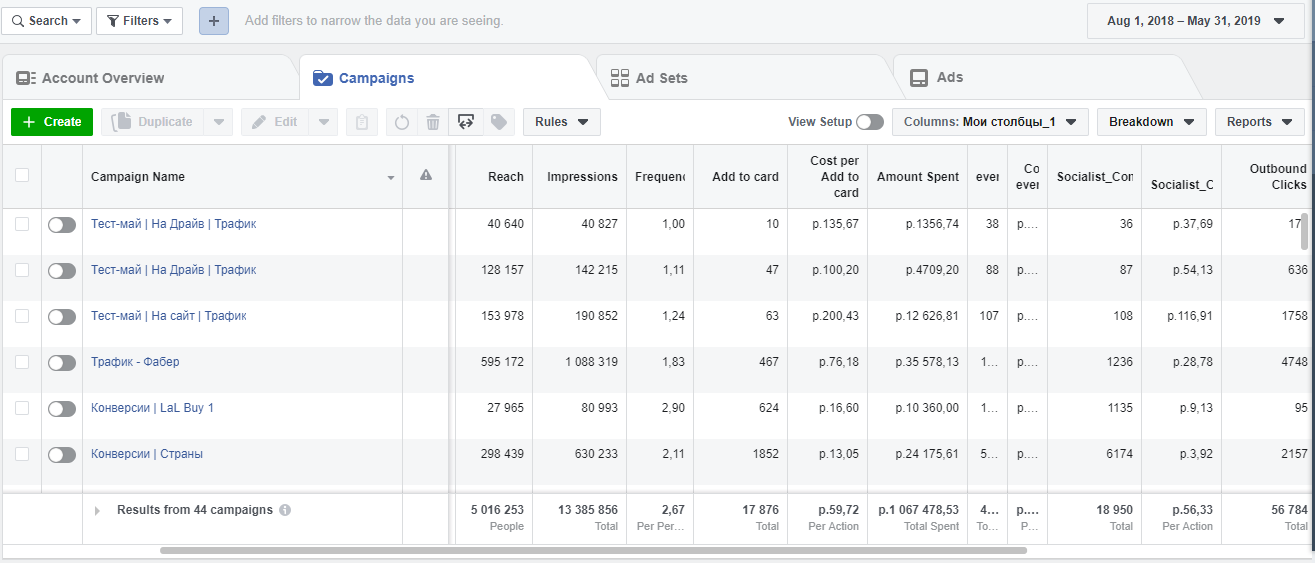 What was done: Put a pixel of FB and set up all the necessary standard events. Optimization for content views, optimization for adding items to the cart and optimization for the target page views (traffic).