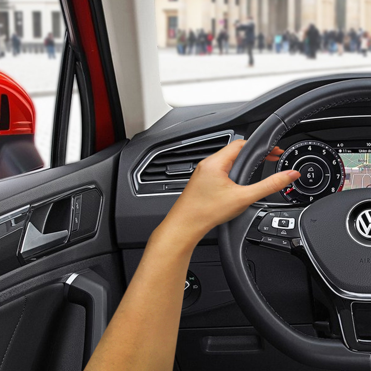 на значок VW и погружается