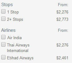 - Check boxes are used to indicate stops, and which airlines one could fly with - very similar on other reservation websites.