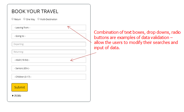 - Drop down menus are often used to choose the number of passengers or to choose the time in which the customer would like to fly.