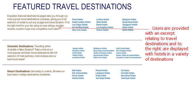- Expedia exposes their customers to their whole. For example, they might advertise flights on the hotel page.