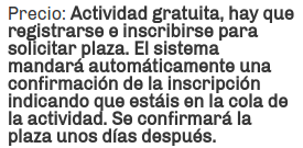 - Atención! No apuntarse a la actividad si eres Organizador de la misma, puede desbarajustar el nº de plazas.