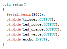 - Le déclenchement (d’où le nom de trigger en anglais) de cette salve est activé par l’envoi d’un signal TTL (signal carré de 0 à 5V) de 10µs sur la broche trigger du capteur.