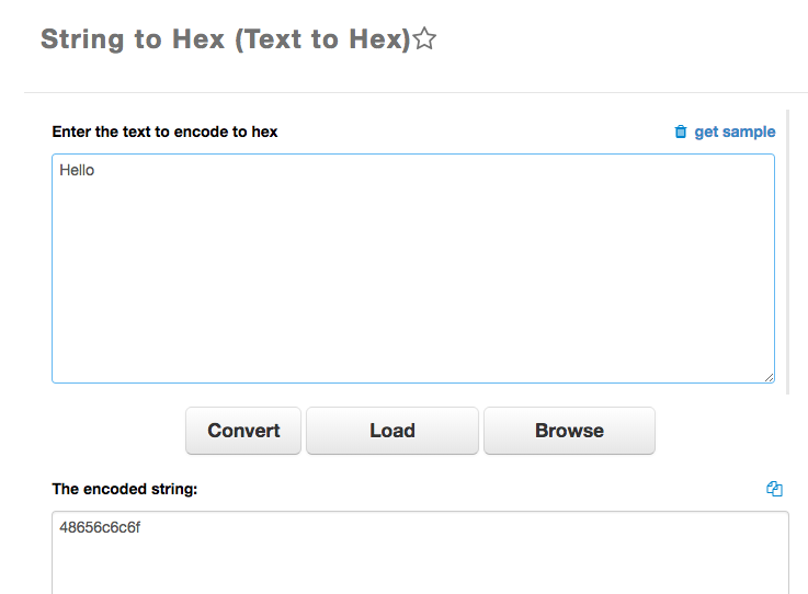 Sur https://codebeautify.org/string-hex-converter, convertissez votre string et ajouter "0x" devant