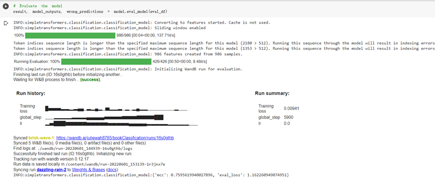 - The model got about 0.76 on MCC metric, which proof the ability of the model in book classification.