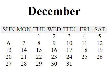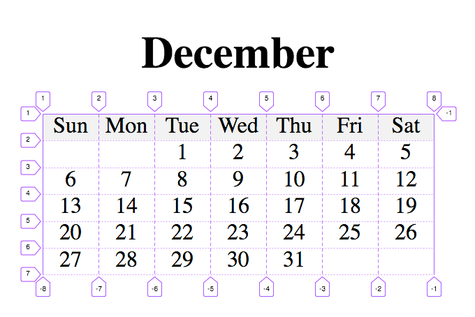 - Chris Coyier (2020). A Calendar in Three Lines of CSS. Retrieved from: https://css-tricks.com/a-calendar-in-three-lines-of-css/