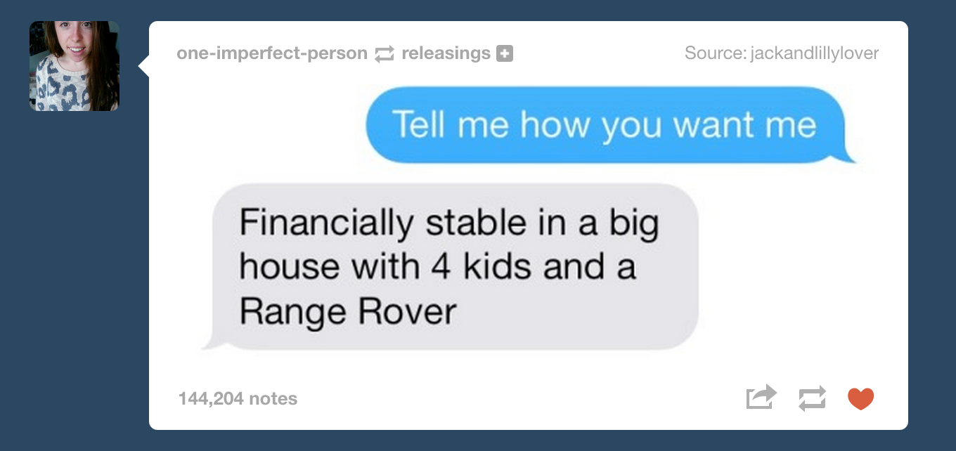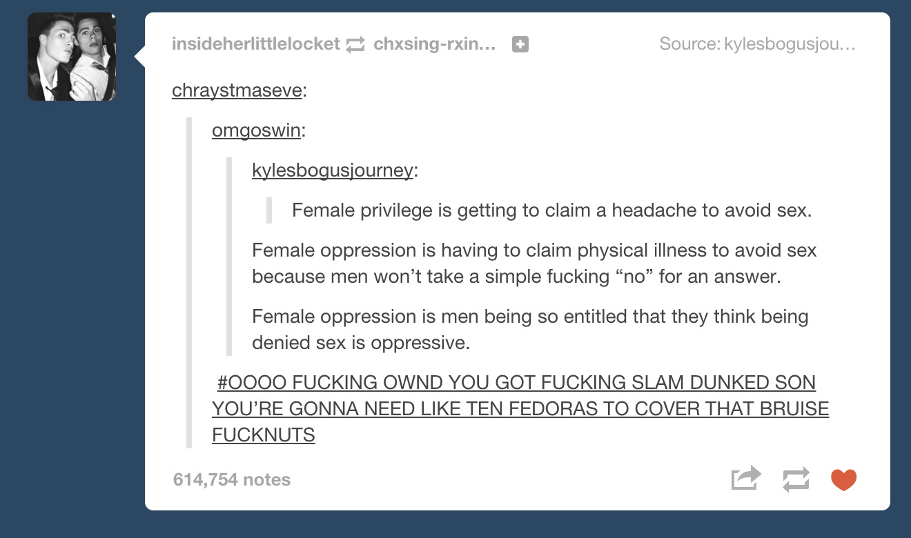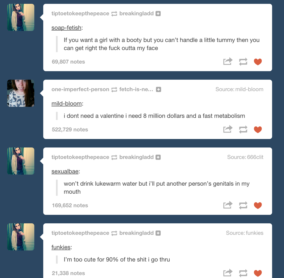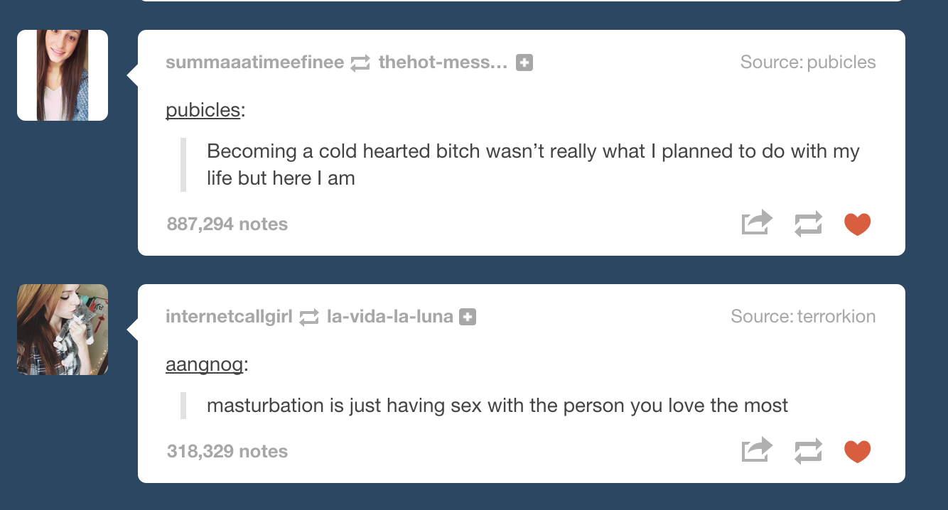 I'll show you a few examples. And you'll kind of "know" Tumblr culture the way I know it from these.