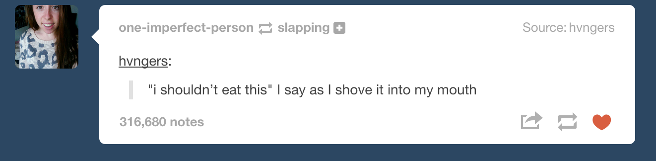 I was actually going to argue that texts are just as important in Tumblr. Images are indeed important. But let this one on the left be our last one...