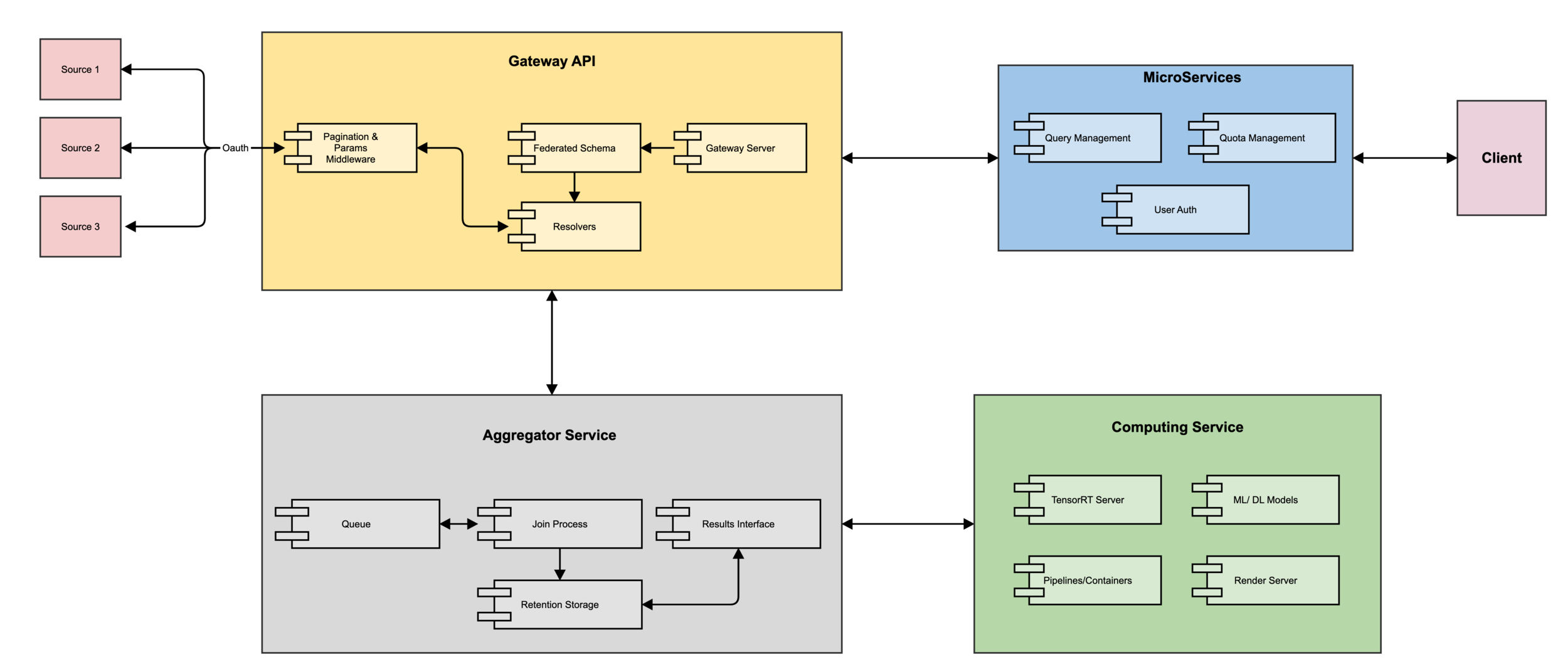 Single data graph that provides a unified interface for querying all of your backing data sources. This allows clients to fetch data from any number of sources simultaneously, without needing to know which data comes from which source.