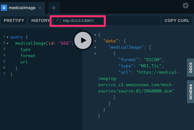 schema = make_federated_schema("schema_file.graphql", [query, model, medicalImage])Medical Imaging Service