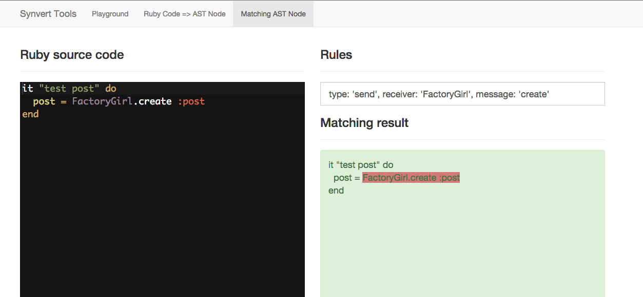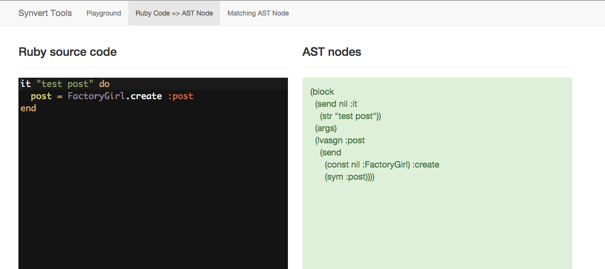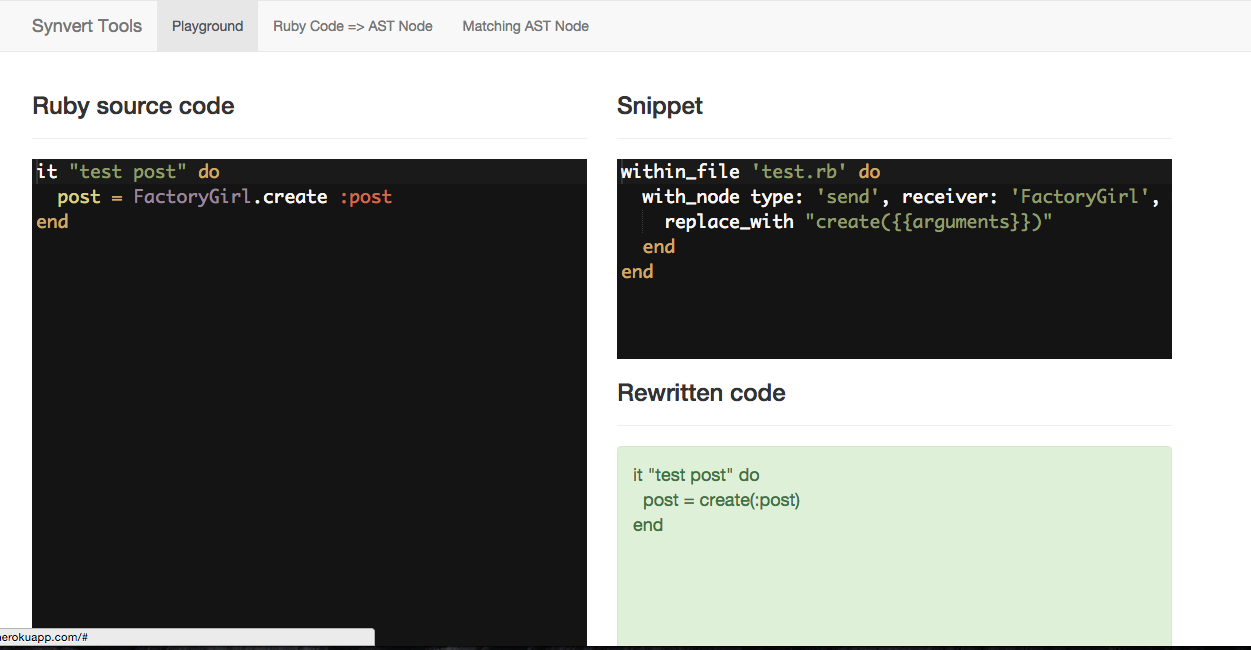 http://synvert-tools.herokuapp.com/