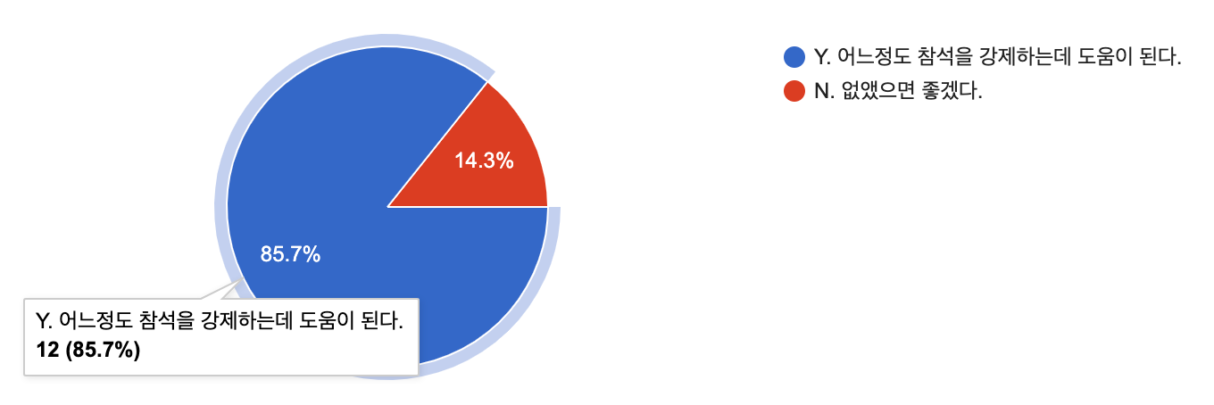 | 프로젝트에 대한 흥미 저하, 이직, 코로나로 인한 온라인 모임 |