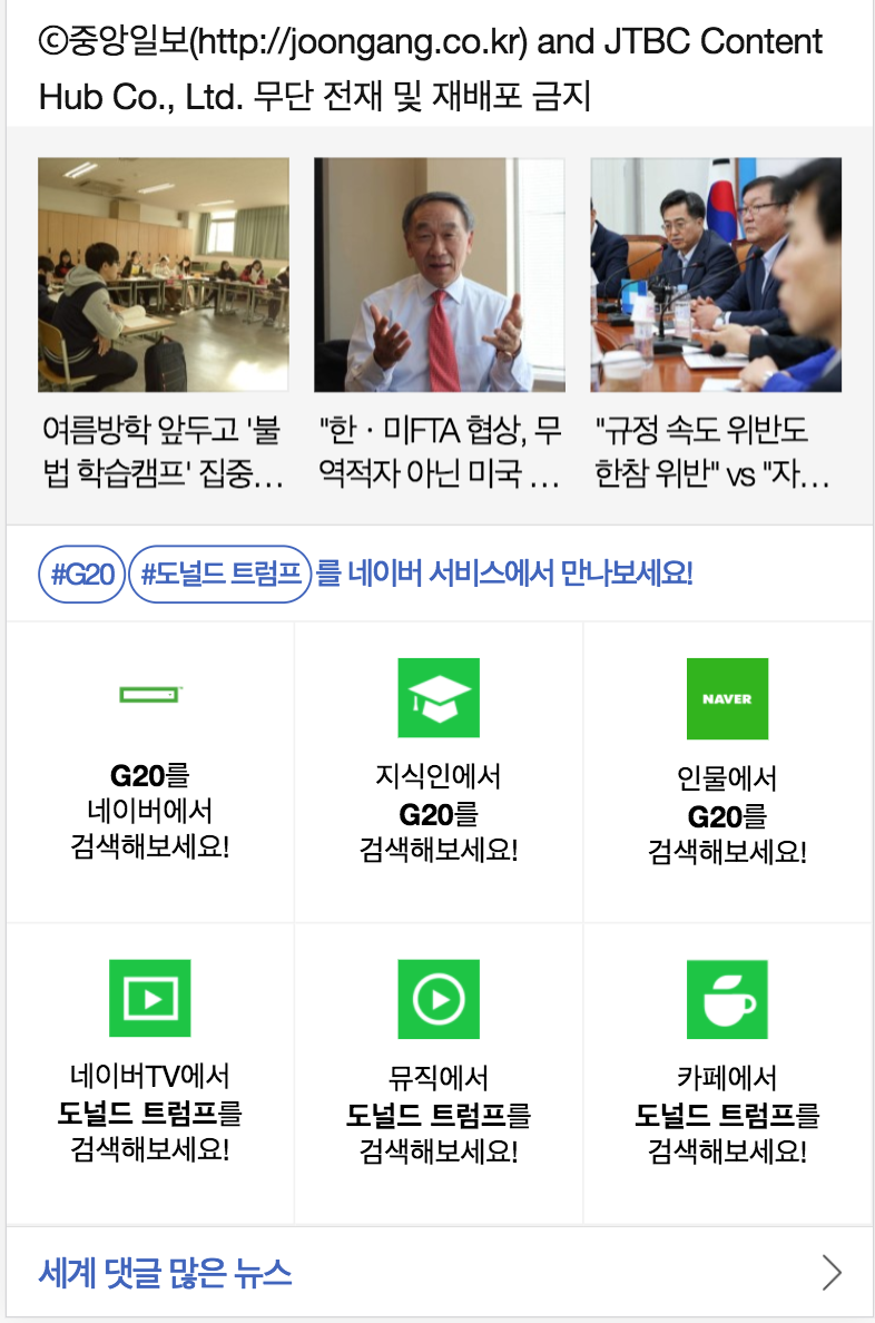 뜬금없이 네이버 뮤직에서 도널드 트럼프를 찾으라고 추천한다.
