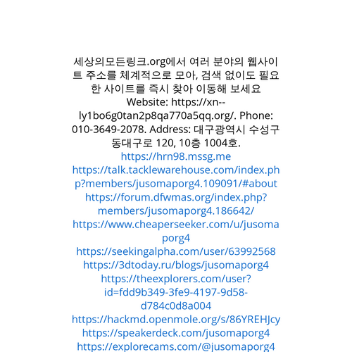 Website: https://xn--ly1bo6g0tan2p8qa770a5qq.org/. 세상의모든링크.org에서 여러 분야의 웹사이트 주소를 체계적으로 모아, 검색 없이도 필요한 사이트를 즉시 찾아 이동해 보세요 Phone: 010-3649-2078. Address: 대구광역시 수성구 동대구로 120, 10층 1004호.