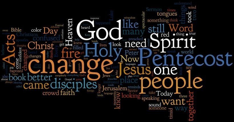When the day of Pentecost had come, they were all together in one place. And suddenly from heaven there came a sound like the rush of a violent wind, and it filled the entire house where they were sitting. Divided tongues, as of fire, appeared among them, and a tongue rested on each of them. All of them were filled with the Holy Spirit and began to speak in other languages, as the Spirit gave them ability.