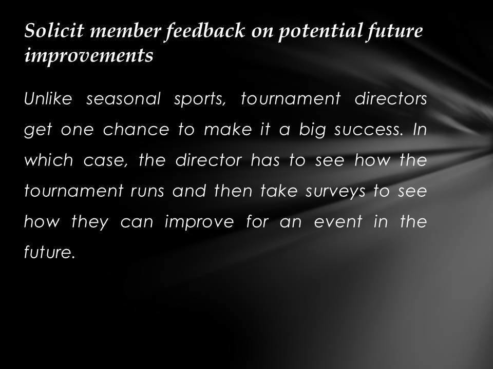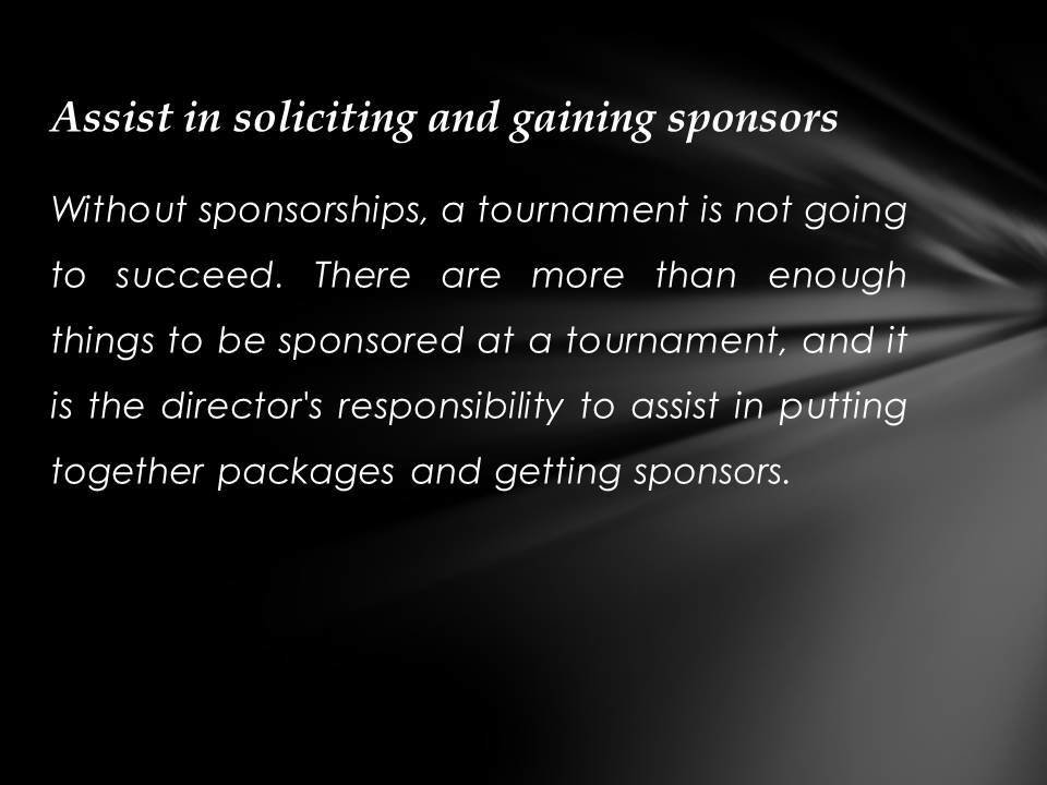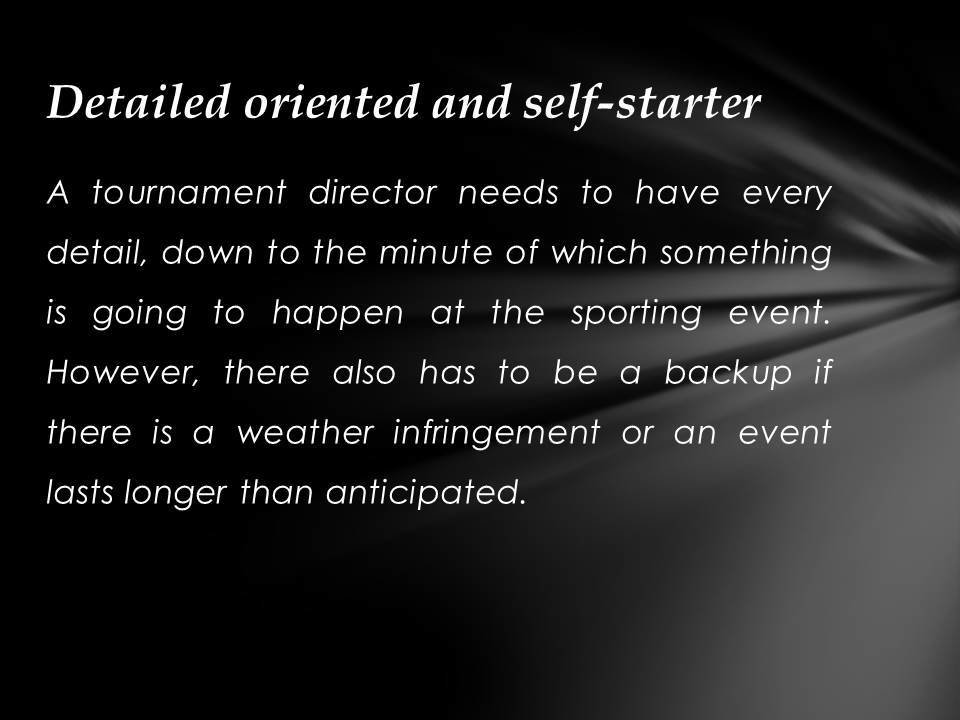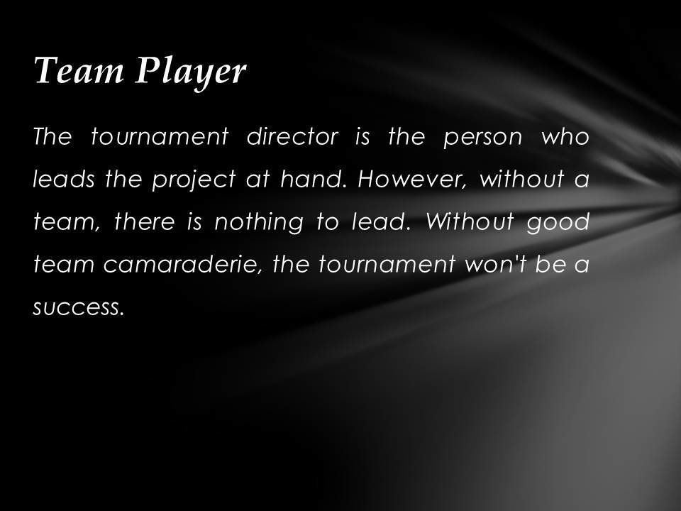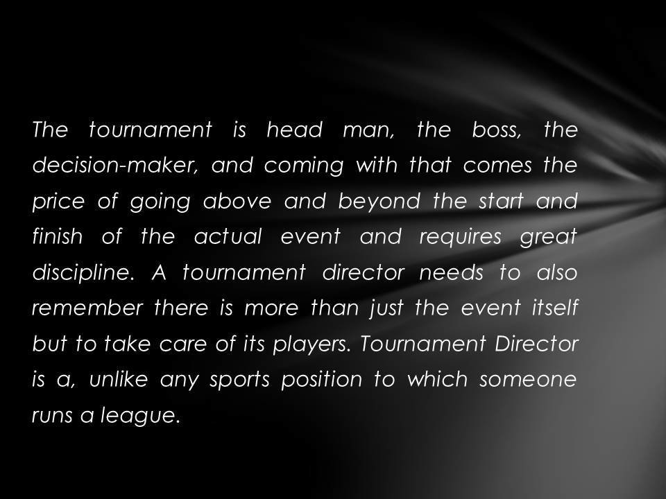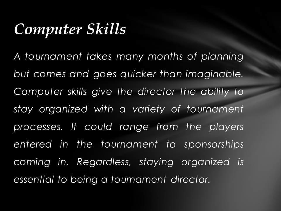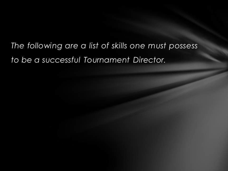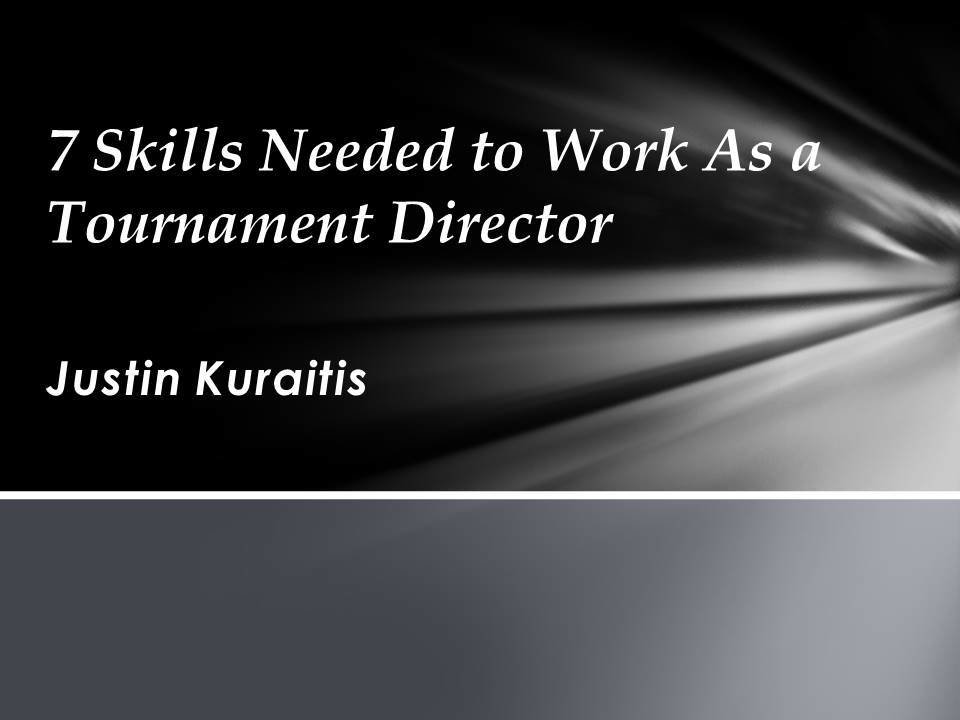 Justin Kuraitis - Skills Needed to Work As a Tournament Director. The following are a list of skills one must possess to be a successful Tournament Director.