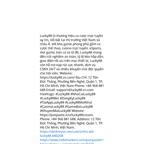 Website: https://justpaste.it/u/lucky88cncomhttps://justpaste.it/u/lucky88cncom Lucky88 là thương hiệu ca cược trực tuyến uy tín, nổi bật tại thị trường Việt Nam và châu Á. Với kho game phong phú gồm ca cược thể thao, casino trực tuyến, eSports, slot game, bắn cá và lô đề, Lucky88 ma