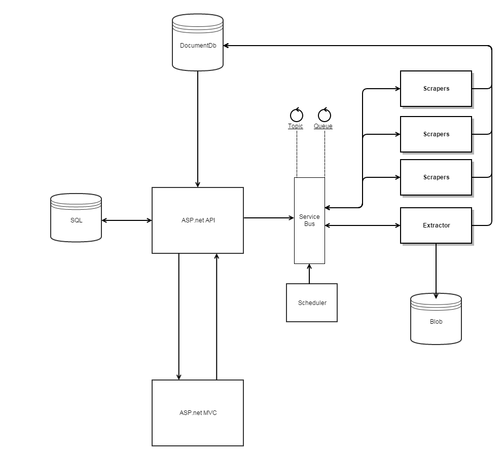 The Scrapers are a cloud services similar to the extractor they will pull information out of the raw data and save it into DocumentDb