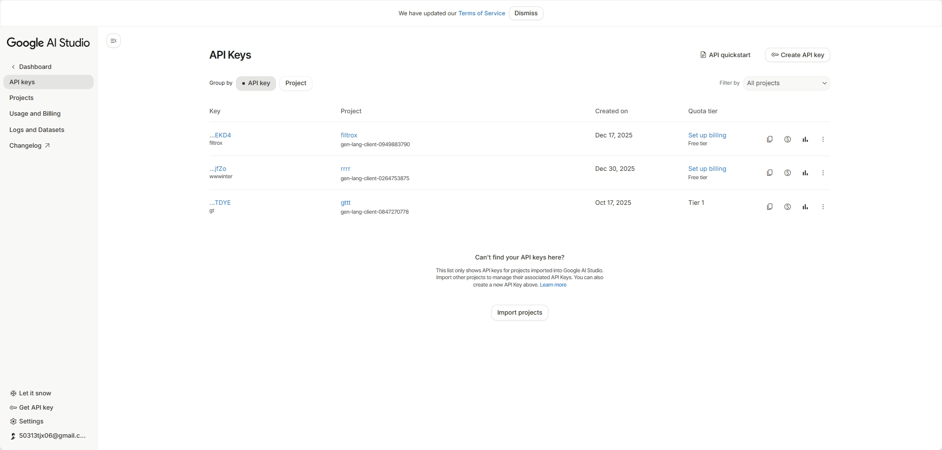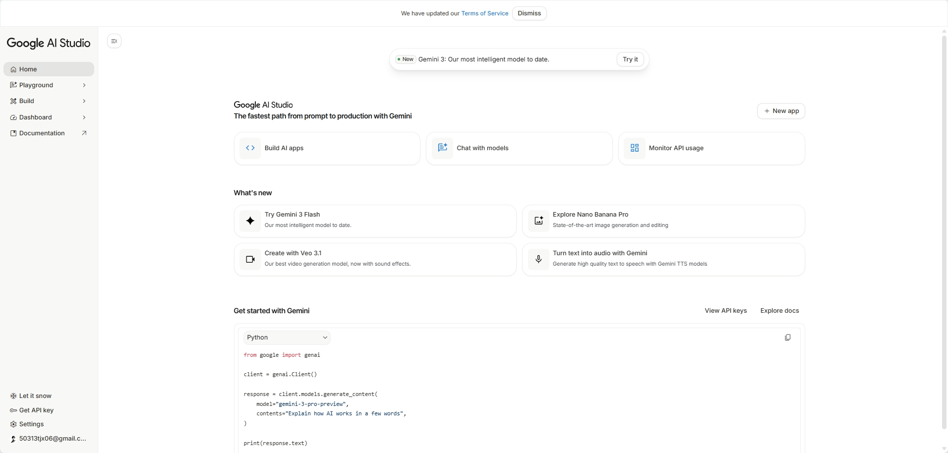 要使用 Google Gemini 的相關應用要去 Google AI Studio 這個網站。