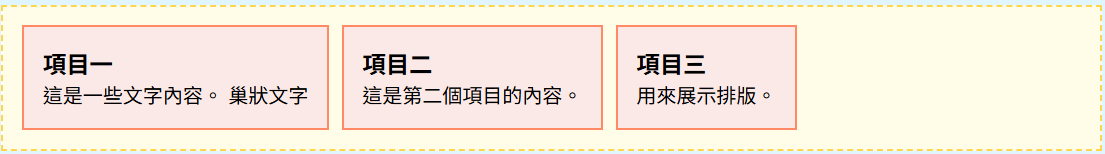 如果同時設定很多個子元素的 flex-grow 他們就會按照設定的比例「分配空白區域」。